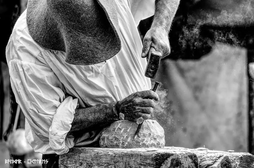 Darbieten des Historischen Steinmetzhandwerkes mit traditionellen Werkzeugen zum begaffen und bestaunen.