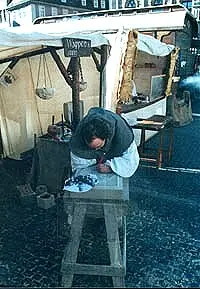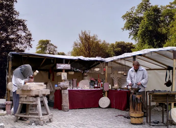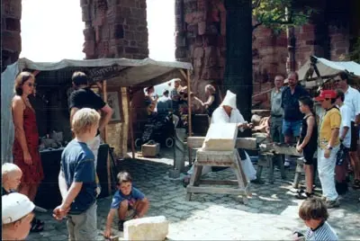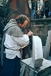 Ich arbeite in offener Werkstatt auf Mittelaltermärkten, Feste und Fach messen. Ziel ist es, während der Veranstaltungsdauer tatsächliche Auftragsarbeiten in traditionell handwerklichen Arbeitsweisen zu vollenden. Einevielseitige Auswahl selbst gefertigter Arbeiten sowie Geschenk- und Gebrauchsartikel aus Naturstein bereichern das ständige Angebot in einem Stand, dessen Ambiente dem Charakter der jeweiligen Veranstaltung entspricht. Angebote des kostenlosen Selbstausprobierens und eine familienfreundliche Schatzsuche runden das Erlebnisangebot ab. Der Stand wird ausschließlich mit natürlichen Lichtquellen ausgeläuchtet. Die Historische Steinmetzerey ist für Veranstalter gegen ein Honorar buchbar.